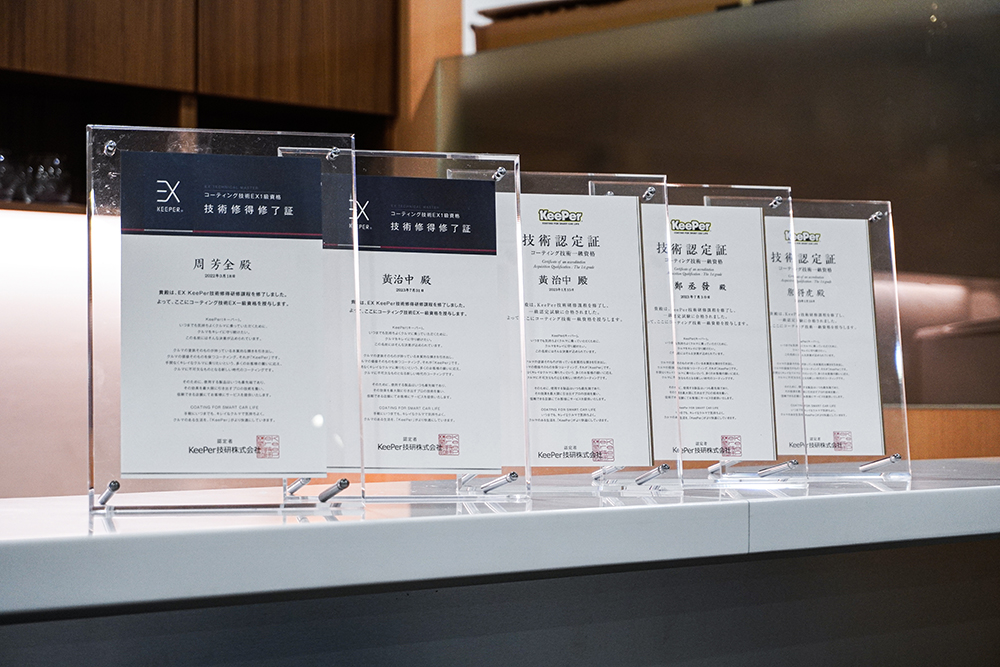 KeePer PRO SHOP 強調洗車與汽車鍍膜是匠人的藝術,必須要很有效率地把車輛清潔乾淨,甚至做完汽車鍍膜,還要維持賞心悅目的感覺。要達到如此高的水準,在台灣的每一位KeePer技師都必須要考取Keeper的原廠證照才能正式上工,甚至要去日本總社進修,不斷地在技術上進步。