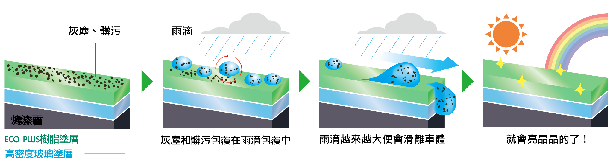 加上全新的「樹脂塗層」後的鍍膜就叫「Fresh Keeper 鍍膜」及「Eco 高效節能鑽石鍍膜」,跟之前的水晶及鑽石鍍膜的維持時間一樣,但回廠洗車進行鍍膜保養的次數少了一半以上,除了減省用水量,也減少車主需要回廠保養的頻率負擔。