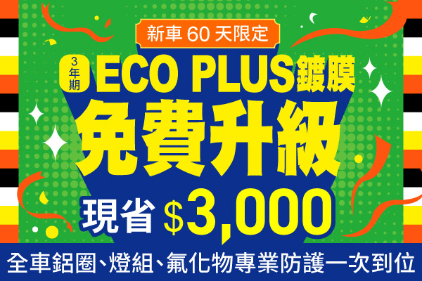 •優惠內容: 施作「ECO PLUS 高效節能鑽石鍍膜」,免費贈送豪華升級套餐(價值 $3,000)。