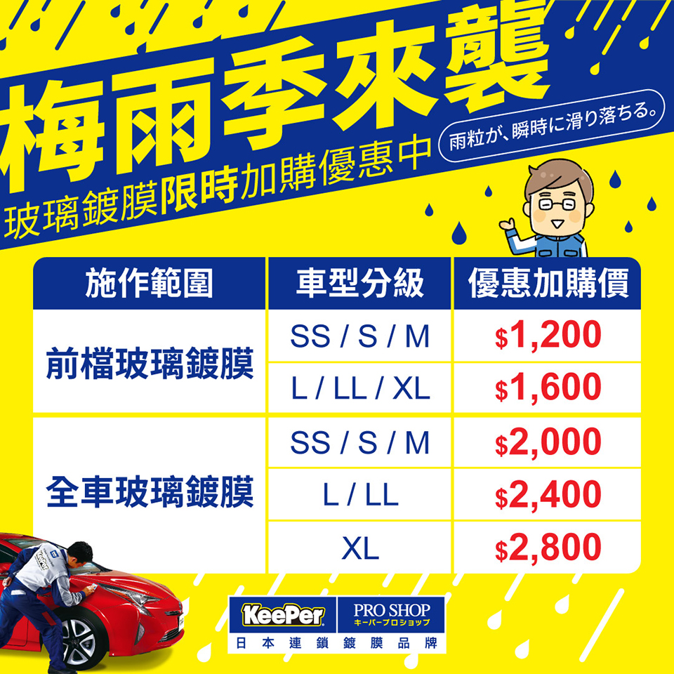 【 梅雨限定 ‧ 專業玻璃撥水方案 】