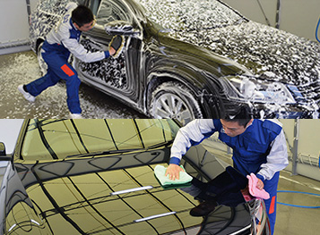 當撥水效果減弱時,不一定是鍍膜的問題,可能是礦物質形成了的阻害撥水效果的覆膜。(礦物質構成的「阻害撥水膜」) 當遇到這種情形,且您的愛車是經過KeePer鍍膜過的車輛,只需在洗車後,使用特殊纖維布加上微量樹脂劑擦拭,便能恢復撥水效果和光澤。