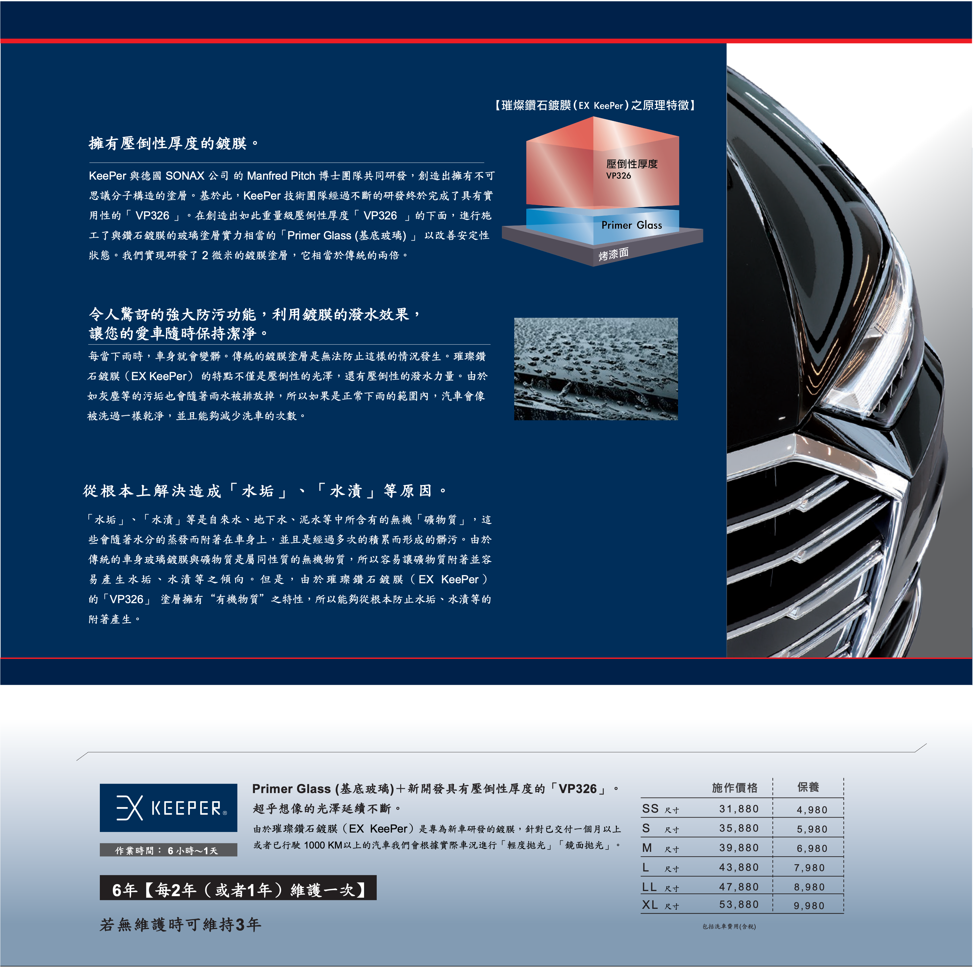 EX KeePer 全面保養 套餐(包含鋁圈鍍膜與”全車“氟化物玻璃鍍膜)