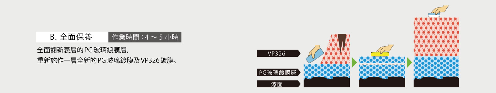 作業時間:約9小時 (包含玻璃、塑料、鋁圈、頭尾車燈、車牌及門框內側、引擎蓋內側、引擎室內側鍍膜)